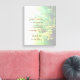 La toile de prière Sérénité représente une scène de nature avec le soleil qui brille à travers la forêt et met en valeur un bel arbre avec des feuilles verts et jaunes. Il comporte la prière bien-aimée, "Dieu, donne-moi la Sérénité d'accepter les choses que je ne peux pas changer; Courage de changer les choses que je peux, Et la Sagesse de connaître la différence."