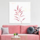 An abstract watercolor featuring patterned shapes and a botanical in a palette of maroon and soft calming colors.