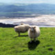 Photographie de mouton de montagne avec vue sur l'estuaire Dyfi. Pays de Galles Royaume-Uni.
