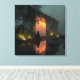 A lone silhouetted figure sits in quiet contemplation before a massive, vine-draped concrete ruin as a blazing orange-red sunset floods through the open doorway, turning the scene into a portal of fire. Thick moss, ferns, and jungle greenery reclaim the weathered structure while still water at the figure’s feet mirrors the intense glow in perfect symmetry. Subtle firefly-like lights twinkle among the leaves, adding delicate magic to the moody, reflective atmosphere of time, resilience, nature’s persistence, and the beauty found in stillness amid decay. Ideal for meditation rooms, bedrooms, home offices, therapy spaces, dark-fantasy decor, or as deeply evocative gifts for introspective souls, nature lovers, spiritual seekers, post-apocalyptic enthusiasts, or anyone drawn to quiet power and atmospheric depth.