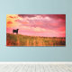 Vous ressentirez l'effet calmant de cette toile d'art magnifique qui a une silhouette de vache noire solitaire au coucher du soleil avec de beaux éclairages sur les nuages et la colline herbeuse.