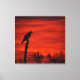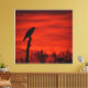 Un faucon solitaire perche sur une branche d'arbre nu contre un spectaculaire ciel de coucher de soleil rouge, capturé en parfaite silhouette. Cette image saisissante évoque la solitude, la force et la beauté sauvage de la nature. Un ajout audacieux et atmosphérique à tout mur de maison ou de bureau.