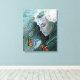 Impression de toile de sirène avec "Serenity" de Michaeline McDonald. Une princesse de sirène portant une étoile de mer et une couronne de corail admirant une paire de chevaux de mer et de poissons clowns. Belle addition à un décor nautique ou marin. Choisissez la taille.