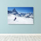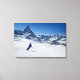Impression paysage de toile d'une skieuse sur les pentes du Matterhorn à travers la neige fraîche sur une belle journée avec un ciel bleu clair dans la station de ski Zermatt, canton Valais en Suisse. Superbe décoration sur votre mur !