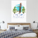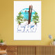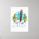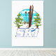 Ski, logo d'affiche de ski dans un joli paysage de dessin animé.