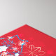 Snowflake greetings in red, blue and white. May you have cozy and warm holiday time ! Cheers !