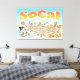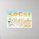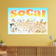 Une scène lumineuse et colorée offre une vue spectaculaire de la Californie du Sud - personnages farfelus sur la plage et le désert de SoCal présentant Los Angeles, Long Beach, San Diego, Père Noël Barbara, Riverside, Palm Springs, Anaheim, Anza Borrego et Joshua Tree parcs ainsi que les villes frontalières de Tijuana, Tecate et Mexicali. Cette scène pleine de charme a tout - un surfeur pend dix tandis qu'une sirène salonne sur un rocher, une épaulard saute de l'eau, des animaux zoo saluent les touristes, un couple de plage musclé à flex pour impressionner comme un T-Rex rugit un défi et un réservoir se met en position et bien plus encore...