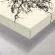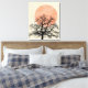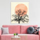 Une silhouette d'arbre aux branches nues en hiver avec un soleil rougeâtre sur un arrière - plan beige clair.