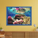 Une belle photo de corail de mer et deux clowns. Les mauvaises herbes sont dans les couleurs violettes et blanches les deux petits poissons sont orange et noir. vous pouvez voir le reflet du haut de l'eau avec le poème Rien d'or ne peut rester.