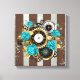 Toile Steampunk Clock and Turquoise Roses on Striped