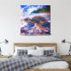 Canvas print of a sea turtle on the beach while the waves roll in .