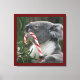 Photo d'un ours koala assis dans un eucalyptus en train de manger un sucre de canne de Noël. Personnalisez en changeant la couleur de l'arrière - plan et/ou ajoutez votre propre photo et nom ou autre texte pour un cadeau de vacances personnalisé d'Australie.
