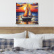 Un bateau solitaire dérive tranquillement sur l'eau, baigné par la chaleur d'un coucher de soleil à couper le souffle. Le ciel est peint de riches teintes d'orange, de rose et de violet, reflétant magnifiquement les vagues ondulantes. Cette oeuvre évoque un sentiment de tranquillité et d'aventure, parfait pour ceux qui aiment la mer et la magie du crépuscule.