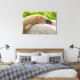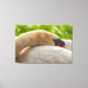 Une photo de fond capture un cygne muet reposant sur la tête sur son corps, créant une forme douce et arrondie. L'arrière - plan est un vert flou, représentant probablement un environnement de prairie herbacée.