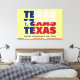 Impression de toile Patriotic TEXAS Friendship Matters, montrant TEXAS TEXAS TEXAS TEXAS dessiné dans le drapeau du Texas, dressé contre un arrière - plan jaune pâle. En dessous, il y a du TEXTE PERSONNALISABLE qui lit WHERE AMIENDSHIP IMPORTERS, que vous pouvez personnaliser en ajoutant votre nom ou en créant votre propre texte. La devise de l'état du Texas est Amitié, et le mot espagnol 'tejas' signifie 'amis', d'où le nom du Texas est censé dériver. Cela ferait un grand cadeau aux Texans et à tous ceux qui aiment l'Etat américain "Lone Star", surtout à Noël, anniversaires, anniversaires, et pour le Mois du patrimoine du Texas. Vous aurez le choix entre une large sélection de cartes, d'invitations, d'articles de fête, de vêtements, de décors et de cadeaux sur le thème du Texas, conçus par Berean Designs. Les autres tailles sont indiquées séparément.