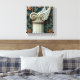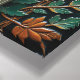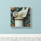 A square relief sculpture featuring a classical column adorned with wings, set against a dark green background with botanical elements. The column, positioned in the lower center, is a pale, weathered white with vertical fluting and decorative molding at the base and capital. Atop the column sits a stylized capital with a prominent volute, from which a pair of stylized wings extend upwards and slightly to the right.