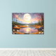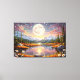 Contemplate the magic of a giant moon reflected in serene waters, surrounded by snow-capped mountains and a starry sky in pink and golden tones. This fantastic artwork transports you to an enchanted realm where dreams come true. Stunning digital art that brings peace, mystery, and cosmic beauty to your space.