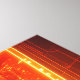 This artwork reveals a blazing high-tech datacore suspended within a digital void, radiating intense orange and crimson light. The glowing rectangular core appears alive—an architectural monolith of data, energy, and intelligence—interlaced with luminous circuits and infinite code streams. Surrounding it, transparent gridlines and neon pathways form a cybernetic chamber, suggesting a future where information itself becomes a living force. The composition evokes themes of artificial consciousness, digital power, and the raw heat of computation, capturing the moment where technology transcends hardware and becomes pure energy.
