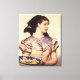 Ce dessin présente une peinture de l'artiste allemand Karl Gussow (1843-1907). Il représente une femme d'une communauté de pêcheurs traditionnelle. Elle tient une grande assiette contenant des huîtres préparées. Elle porte une robe élégante et un corset avec un foulard en soie autour de ses épaules. Elle a aussi une écharpe noire autour de ses cheveux bruns. C'est une belle jeune femme au visage amical : elle a les yeux bleus et les lèvres rouges. Sa peau blanche laiteuse est exposée autour de son cou et de ses bras nus. Les huîtres ont l'air délicieuses et ont été servies avec un citron, afin que son jus puisse être pressé sur les crustacés. L'oeuvre originale a été peinte par Karl Gussow en 1882.