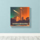 With bold geometry and cinematic flair, Hightower Moon and Train captures a dreamlike vision of American modernity—poised between nostalgia and the stars. A sleek city train glides across the foreground beneath the glowing silhouette of a futuristic skyline, dominated by a tall observation tower—its form echoing icons like Dallas’s Reunion Tower or Seattle’s Space Needle.