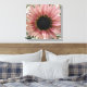 Cette impressionnante impression de toile présente une belle photo d'un tournesol rose pâle. Le tournesol est naturellement rose et les pétales ont un anneau extérieur rose pâle et un anneau intérieur rose plus foncé. Le milieu où les graines sont noires. Cette photo a été prise dans un jardin.