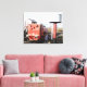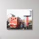 Un train à vapeur rouge magnifiquement restauré, rempli d'eau du réservoir d'eau. Une boîte de signal restaurée se trouve dans l'arrière - plan.