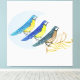 Trois oiseaux de couleurs différentes avec une branche d'arbre dans un style boho simple.