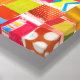 OEuvre colorée et vibrante avec un motif abstrait de carré, de textures et de collages photo.