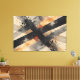 Dynamic abstract art with diagonal black and gray stripes over a cream background. Vibrant touches of orange and red plus ink splatters create movement and energy. Ideal for decorating modern spaces seeking boldness, artistic expression, and an urban, contemporary look.