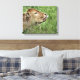 Un beau joli veau allongé dans une longue herbe avec la langue qui sort.