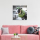 Une vache Holstein se dresse dans un pâturage enneigé portant une couronne de Noël autour du cou illuminée par des lumières douces