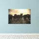 Cette toile enveloppée sépia a une image de vaches noires et blanches dans un pâturage au soleil brillant derrière.