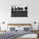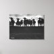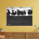Cette belle toile d'art noir et blanc a une image de vaches et de silhouettes de veau assorties debout dans une rangée le long d'une clôture de barbelés dans les Prairies de l'Alberta, Canada.