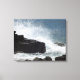 Ce magnifique paysage marin présente des vagues qui s'écrasent sur un rivage rocheux. La photo capte l'arrosage de l'eau qui frappe et est une superbe toile imprimée pour votre mur apportant tous les éléments de la mer dans votre chambre.