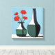 Toile dans un style Boho moderne, illustration minimaliste de deux vase noir et blanc tenant des fleurs rouges