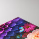 A lush and detailed digital painting featuring a dense arrangement of multicolored flowers in full bloom. The composition showcases a variety of species, including dahlias, roses, and daisies, in shades of brilliant pink, sunset orange, royal purple, and sunny yellow. Delicate blue butterflies flutter throughout the arrangement, adding a sense of movement. The lighting is soft and ethereal, with golden sunbeams filtering from the top, highlighting the intricate textures of the petals and the deep green foliage.