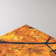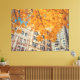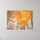Une image vibrante capture la beauté de l'automne dans un cadre urbain. Une branche chargée de feuilles d'érable jaune doré domine le premier plan, créant un cadre naturel pour la scène. Les feuille, aux veines complexes et aux formes délicates, contrastent avec le décor d'une rue de la ville.
