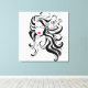 Joli, vintage thème girly en noir et blanc. Un beau visage de femme aux lèvres roses et aux cheveux bouclés.
