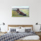 Toile Vue des fermiers récoltant avec un énorme cheval