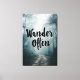A quiet forest trail disappears into soft morning mist, bathed in warm golden light filtering through tall trees. The elegant black script “Wander Often” floats gracefully over the path, inviting viewers to embrace exploration, curiosity, freedom, and the simple joy of moving forward. The scene radiates calm introspection, gentle encouragement, wanderlust, mindfulness in nature, and the timeless beauty of open roads less traveled—perfect for home offices, entryways, bedrooms, reading nooks, travel-inspired bathrooms, therapy spaces, or as uplifting gifts for adventurers, dreamers, graduates, new-chapter celebrants, or anyone who finds inspiration in the call to wander.