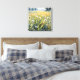 Une prairie luxuriante remplie de pandelions et de fleurs sauvages s'étend sous un soleil éclatant, avec des arbres le long de l'horizon