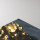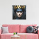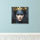 A portrait of a woman with dark blue/gray skin wearing a gold crown, with gold paint dripping down her face.