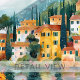 Toile Whimsical Italian Lakeside Village Art
