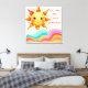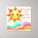 Retro Groovy Wave Wall Art. The design showcases a friendly smiling sun rising over a series of colorful, flowing rainbow waves in a whimsical hand-drawn style.