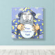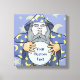 Vieux sorcier avec cape bleue et boule de cristal magique. Utilisez la photo du visage pour customiser. Texte personnalisé.
