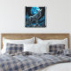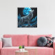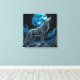 Art d'imaginaire bleu et noir représentant un loup solitaire debout sur une montagne devant une pleine lune. Ai a généré de l'art.