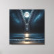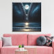Une lune brillante et pleine émerge du dévoilement du ciel nocturne, jetant un doux clin d'oeil sur l'océan tranquille en contrebas