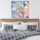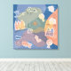 Image de la ville, avec ses maisons, ses arbres, son oiseau et son poisson. Couleur de teinte bleue