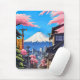 Eine kleine Tokyo Street mit Blick auf den Fuji in der Ferne. AI Anime Stil generierte Kunst.