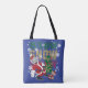 Karo Tom und Jerry in der Kleidung des Weihnachtsmannes, stehend vom Weihnachtsbaum, mit den Worten "Schneeschuhschnee" hinter ihnen.